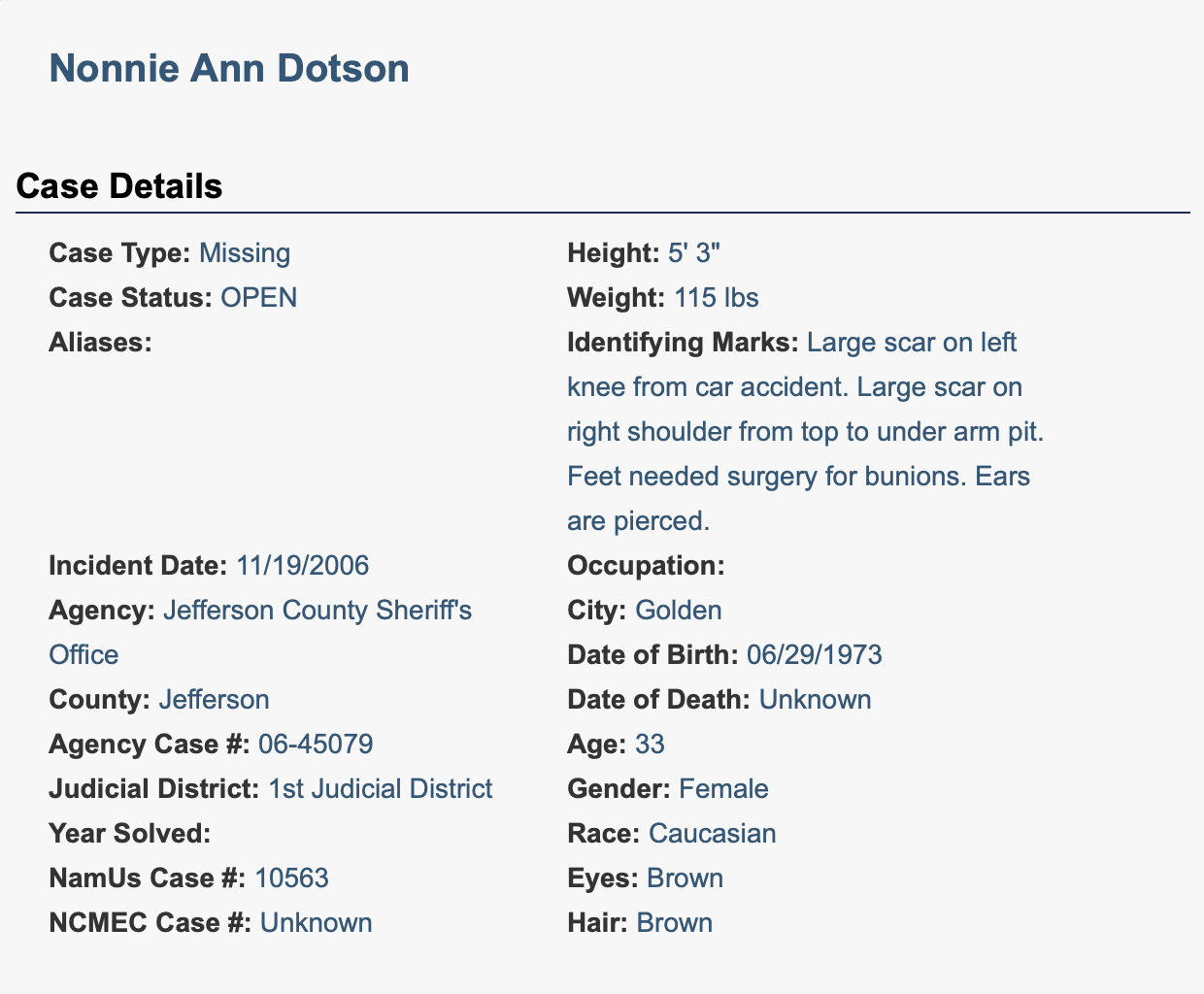 Missing: Lackland AFB Nurse 1st Lt. Nonnie Dotson Disappeared; Last Seen at Brother’s Home in Littleton, Colorado While on Leave (November 19th, 2006)