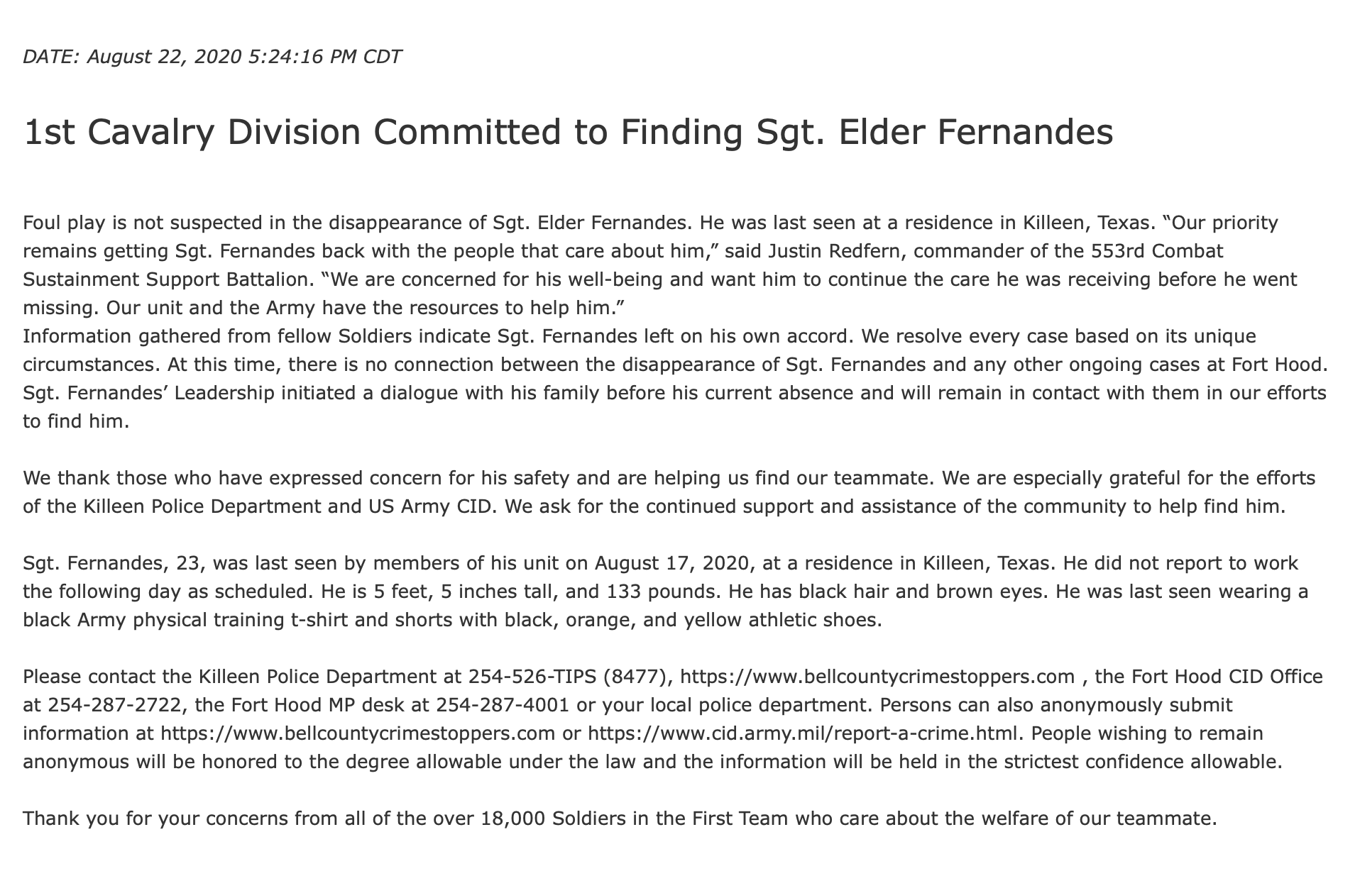 As it stands, there are more than 1,000 deserters wanted by the U.S. Army and it remains unclear explicitly what is being done to determine their fates. Ten months before Guillen disappeared, Pvt. Gregory Morales also vanished from Fort Hood. His body was unintentionally recovered a few miles from the base in June, during the search for Guillen. He had been listed as AWOL in August 2019 and later as a deserter.