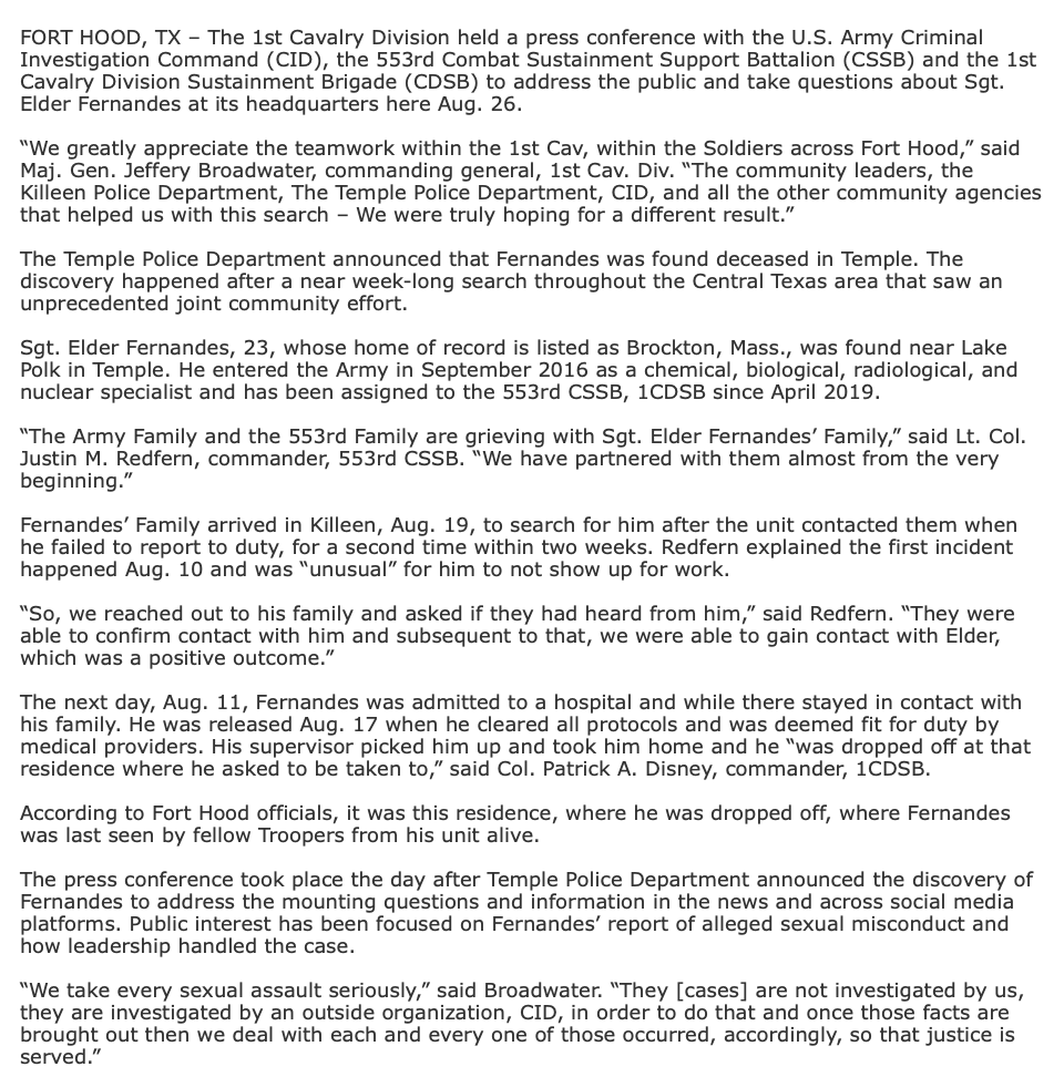 Research Reveals Pattern of Violence, Suspicious Deaths, Problematic Death Investigations, and Cover-up at Fort Hood in Texas (September 11, 2020)